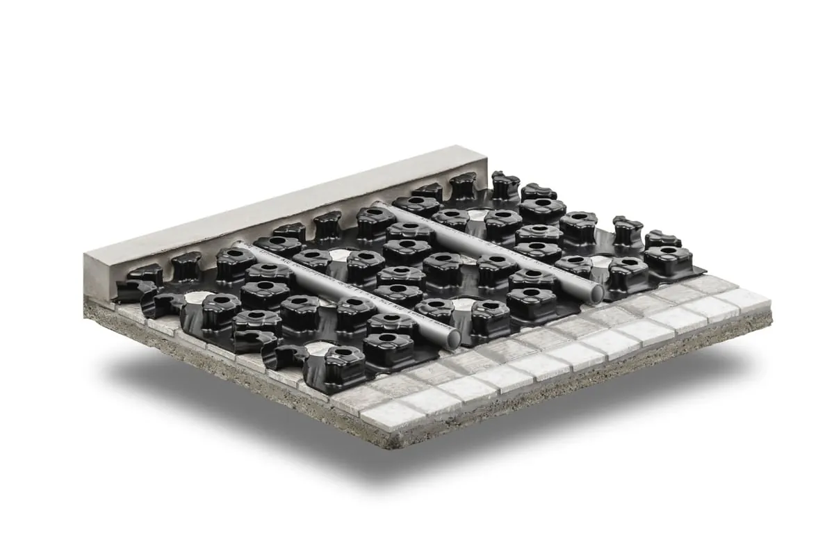 Das Dünnschichtsystem x-net C15 ist gezielt auf die Nachrüstung ausgerichtet. Das selbstklebende Noppenelement lässt sich laut Hersteller durch sein leichtes Gewicht und eine geringe Aufbauhöhe ab 17 mm direkt auf unterschiedlichen, bereits vorhandenen Bodenbelägen verlegen. Das erspare Abbruch- und Stemmarbeiten bei der Renovierung. Durch die Aussparungen im Noppenelement verbindet sich die Vergussmasse dauerhaft mit dem Untergrund. Da dabei die Heizungsrohre nur gering überdeckt werden, ist das System besonders energieeffizient und reaktionsschnell, heißt es weiter.