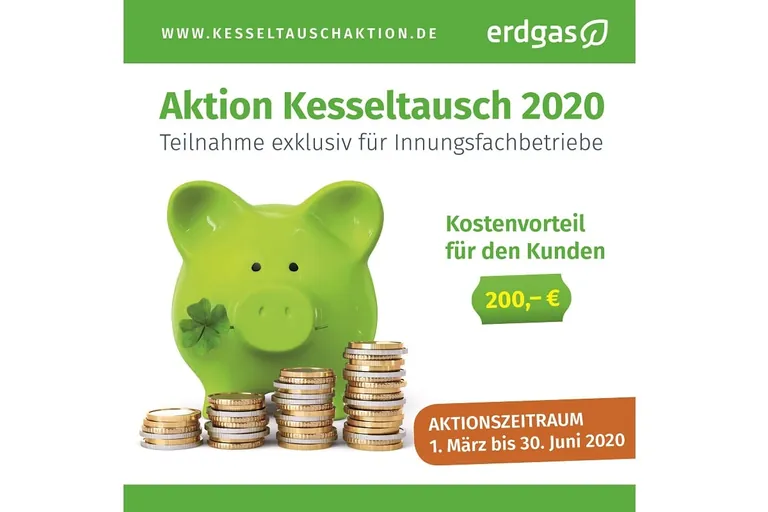 Vom 1. März bis zum 30. Juni 2020 steht das grüne Schweinchen wieder für einen Kesseltausch-Bonus von 200 Euro (inkl. MwSt.). Für die neue Auflage der „Kesseltauschaktion“ gibt es aber einige Neuerungen.