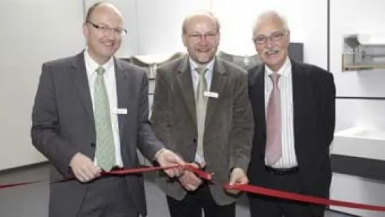 Offizielle Eröffnung des Keuco-Technik-Forums durch den geschäftsführenden Gesellschafter Engelbert Himrich, den CDU-Landtagsabgeordneten NRW Wolfgang Exler und den Bürgermeister von Hemer, Michael Esken (v. r. n. l.).