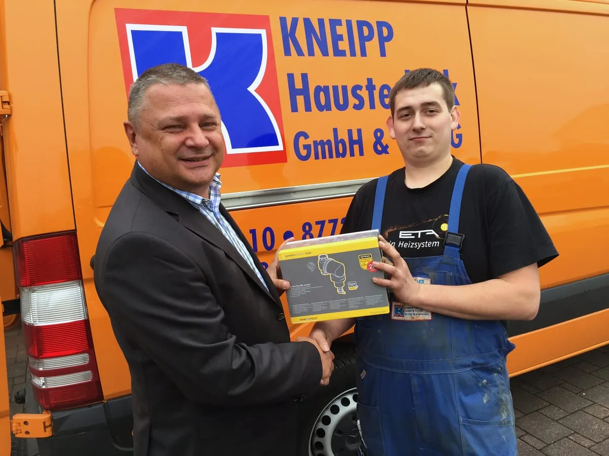 Diese Herausforderung nahmen viele der rund 6.000 Besucher der Hausmesse an. Sie stellten fest, dass der Umgang mit dem Schlammabscheider selbst dann reibungslos funktioniert, wenn man sich nur auf seine Hände verlassen kann. Auf diese Weise konnten die SHK-Fachleute erfahren, wie einfach die Installation eines SpiroTrap MB3 ist – durch seinen drehbaren Anschluss kann das Bauteil in jeder gewünschten Position eingebaut werden. Den Wettbewerb als Schnellster gewann Wilhelm Langenmaier, Auszubildender der Firma Kneipp Haustechnik in Breitenbrunn. Dafür erhielt er als Preis einen SpiroTrap MBL, den großen Bruder des MB3.
