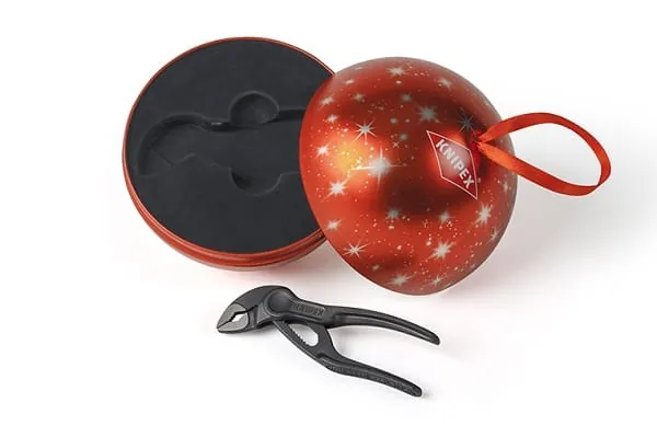 Die festliche Schmuckkugel aus Metall mit der nur 100 mm kleinen Wasserpumpenzange ist das perfekte Geschenk für Handwerks-begeisterte Freunde und Kollegen.