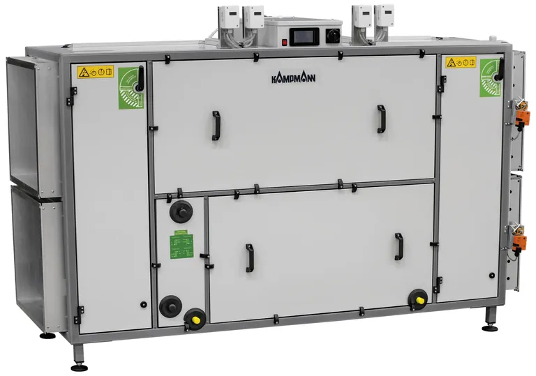 Das RLT-Gerät ist immer einteilig ab Werk montiert und in vier Baugrößen erhältlich mit einem jeweiligen Nenn-Luftvolumenstrom von 1.500 m³/h, 2.500 m³/h, 4.000 m³/h und 6.000 m³/h. Fast alle Baugrößen sind so konstruiert, dass sie durch das gängige Türrohbaumaß von 1 m Breite passen. Je nach baulicher Anforderung des Luftkanalsystems sind Abwandlungen in der Luftführung auswählbar. Dabei kann der Anschluss seitlich oder oben gewählt werden, jeweils mit Abluftanschluss links oder rechts.