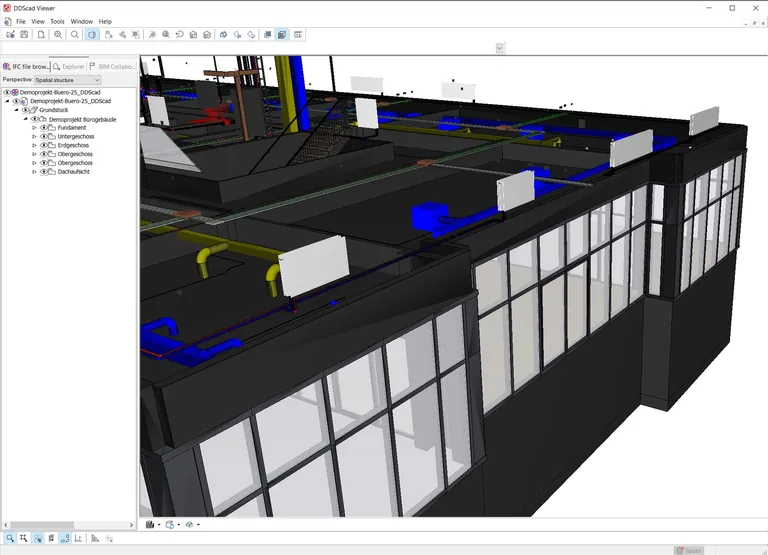 Der DDScad-Viewer bietet verschiedene Funktionen zur Koordinierung von Open-BIM-Modellen, wie z. B. eine erweiterte Kollisionsanalyse, eine leistungsstarke IFC-Datenvisualisierung und die bidirektionale Schnittstelle zu BCF-Servern.