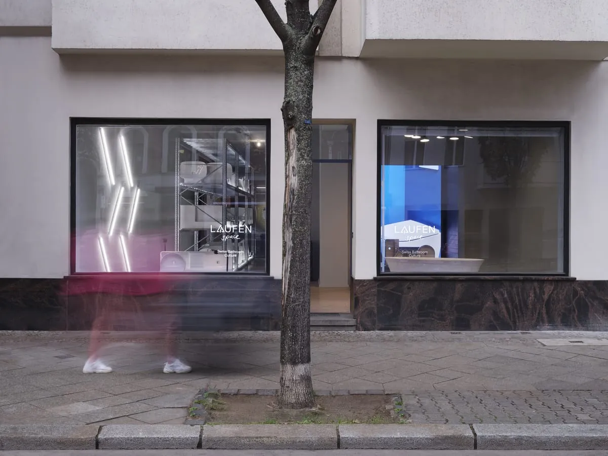 Für die Raumgestaltung des Laufen space zeichnet Konstantin Grcic verantwortlich, der seit Jahren mit der Schweizer Badmarke zusammenarbeitet. Architektonisch gliedert sich der Laufen space in die drei Bereiche Präsentation, Dialog und Experiment. Schon von der Kantstraße sind durch die weiten Schaufenster Neuheiten und Höhepunkte aus dem Portfolio von LAUFEN sichtbar. „Die Gestaltung steht für ein neues Format und einen bewusst offenen Ort, an dem unerwartete Dinge passieren können, anstatt einfach eine Produktschau zu zeigen,“ beschreibt Roger Furrer, Marketingdirektor Laufen, das Konzept.