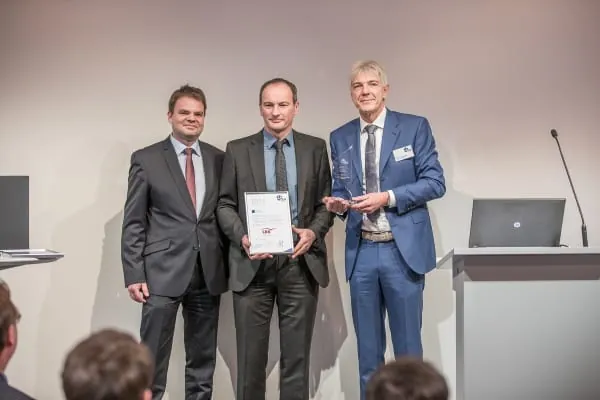 Bernhard Porscha, Referent Liegenschaften in der Abteilung Gebäudemanagement der LBS Südwest, und Simon Probst, stellvertretender Gruppenleiter, nahmen den Preis entgegen.