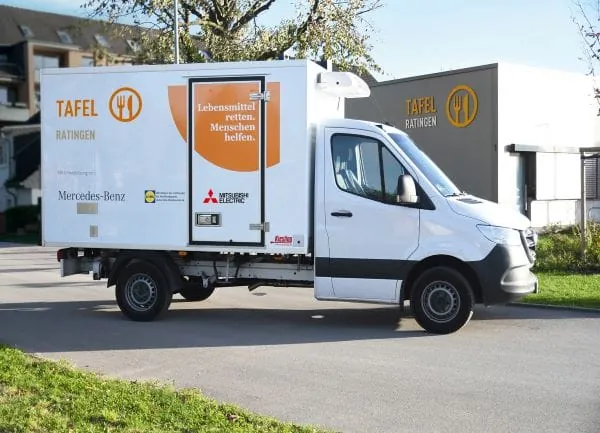 Der neue Lieferwagen der Tafel Ratingen wurde mit 10.000 Euro Unterstützung von Mitsubishi angeschafft. Im Rahmen des Fahrzeuge-Sponsorings übernimmt Mercedes-Benz rund die Hälfte des Listenpreises für Neufahrzeuge. – © Mitsubishi Electric