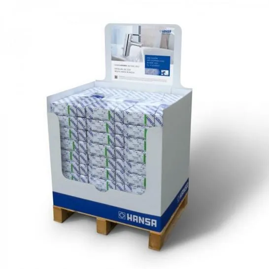Mit der „Hansaprimo Palettenaktion 2012“ bietet der Stuttgarter Hersteller dem Großhandel Vorteile und auch das Fachhandwerk erhält Prämien.   Das Handling ist einfach: Palette bestellen, im Abholbereich aufstellen und das integrierte Kopfschild einstecken und – fertig. Durch das Maß einer halben Europalette (800 x 600 mm) und der Menge von 48 Waschtischarmaturen will Hansa eine ansprechende Produktpräsentation garantieren. Die Armaturen liegen in vorkonfektionierten Zweier-Paketen mit eingelegter Gutscheinkarte für die Kunden aus dem Handwerk bereit. Beim Kauf eines Zweier-Aktionspakets der Hansaprimo-Waschtischarmatur erhalten Installateure eine deutschlandweit einsetzbare Shopping Card als Prämie.