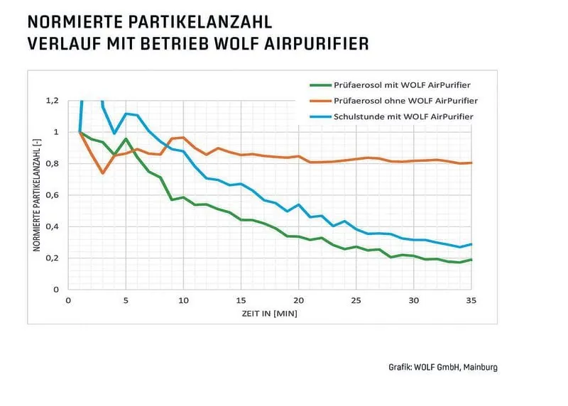 „Die Studienergebnisse des Steinbeis-Forschungszentrums Virtual Testing und der biotec GmbH belegen, dass der Wolf AirPurifier in der Praxis zu einer effektiven Entfernung von Aerosolen beiträgt. Das bestätigt, dass der Einsatz von professionellen Luftreinigungsgeräten vor allem dort sinnvoll ist, wo eine adäquate Lüftung über die Fenster nicht möglich ist. Sie ersetzen das Lüften nicht, sind aber in der Lage, die negativen Auswirkungen unzureichender Lüftungen schnell und effektiv zu mindern. Eine langfristig nachhaltige Lösung sind raumlufttechnische Anlagen, welche mit 100 % frischer Außenluft betrieben werden und zusätzlich Temperatur sowie Luftfeuchtigkeit regeln“, sagt Dr. Thomas Kneip, Vorsitzender der Geschäftsführung bei der Wolf GmbH.