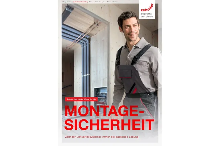 Als konkrete Arbeitshilfe bietet Zehnder dem Fachhandwerker mit der Broschüre „Montagesicherheit“ darüber hinaus ein praxisnahes, kompaktes Handbuch zur komfortablen Wohnraumlüftung mit Fokus auf die optimale Luftverteilung. Die Broschüre behandelt ausführlich sämtliche Themen zur Luftverteilung, bietet eine praktische Checkliste der relevanten Komponenten, wichtige Argumente für das Kundengespräch sowie anschauliche Praxisbeispiele mit Vorschlägen zur Verlegung. Bestellbar ist die kostenlose Broschüre per Mail oder lässt sich hier downloaden.