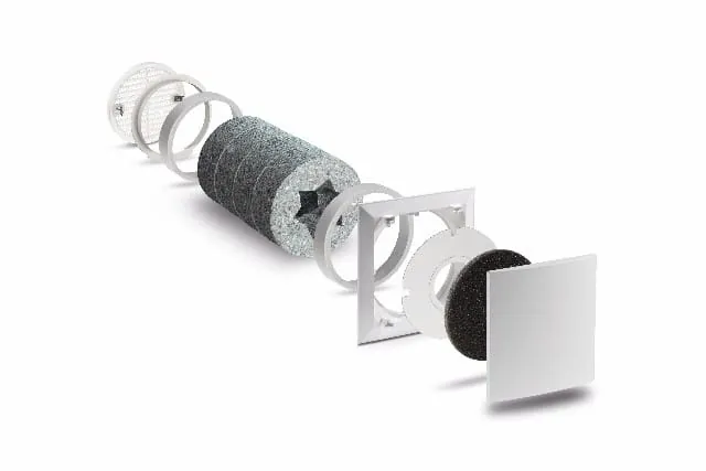 Das ALD (Außenluftdurchlass) ist für alle Einsatzzwecke gerüstet. Mittels einer Reduzierblende lassen sich die Volumenströme z.B. passend zur Planung einstellen und die Innenblende kann bei Bedarf den Luftstrom in bestimmte Richtungen lenken oder komplett verschlossen werden. Dadurch können verschiedene Raumgrößen mit unterschiedlichem Luftbedarf vom ALD optimal und behaglich belüftet werden. Unsere neuartigen und Geschmacksmustergeschützten Schallabsorber im Sterndesign liefern maximalen Schallschutz bei höchsten Volumenströmen und sorgen dafür, dass unerwünschter Lärm nicht durch die Geräte in die Räume eindringen können.