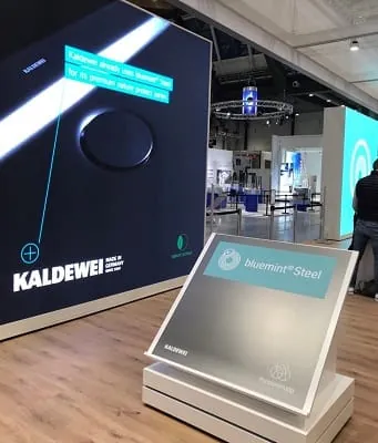 Kaldewei nature protect aus „bluemint Steel “ war auch Thema auf dem thyssenkrupp-Messestand zur Blechexpo in Stuttgart. – © Kaldewei