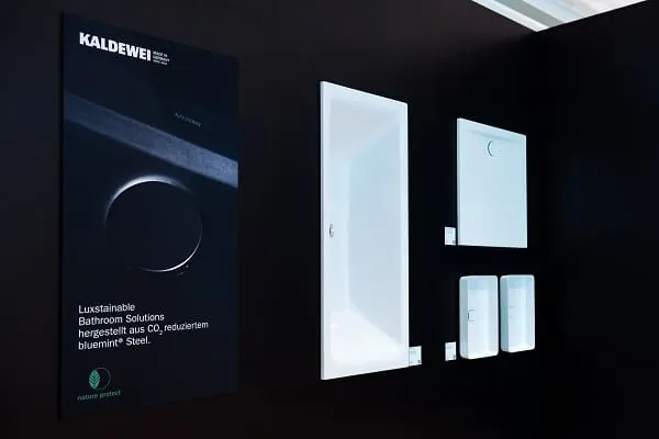 Mit seinem „bluemint Steel“ sorgte thyssenkrupp erst Oktober für Schlagzeilen: 100 % CO2 werden damit bei der thyssenkrupp-Stahlproduktion eingespart. Berücksichtigt man die Emissionen aus der Vorkette wie Förderung und Transport der Rohstoffe weist das Endprodukt einen um 70 % geringeren CO2-Fußabdruck nach dem international anerkannten Green-House-Gas-Protocol (GHG) aus. Unter der Submarke „Kaldewei nature protect“ werden ab sofort in einer limitieren Auflage die Waschtischschale „Miena“, die Badewannen „Puro“ und „Puro Duo“ sowie die neue Duschfläche „Superplan Zero“ über ausgewählte Händler vertrieben.