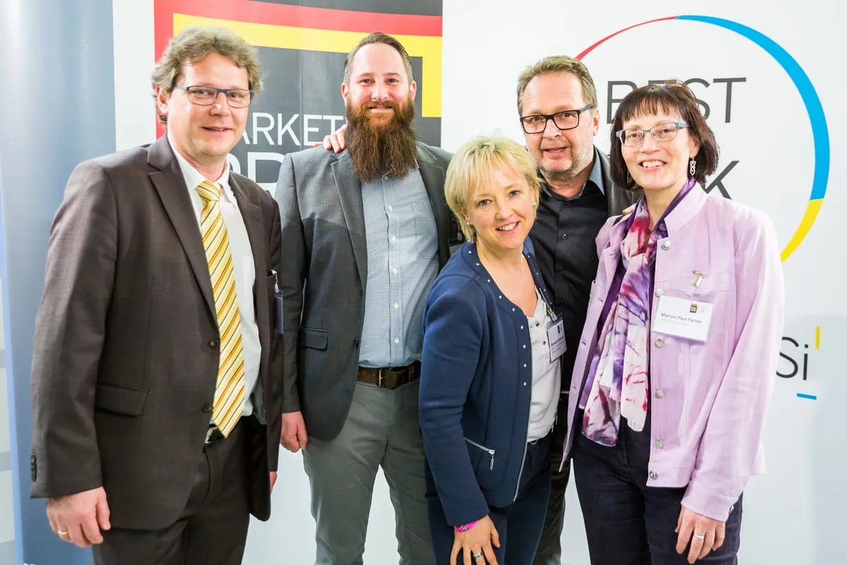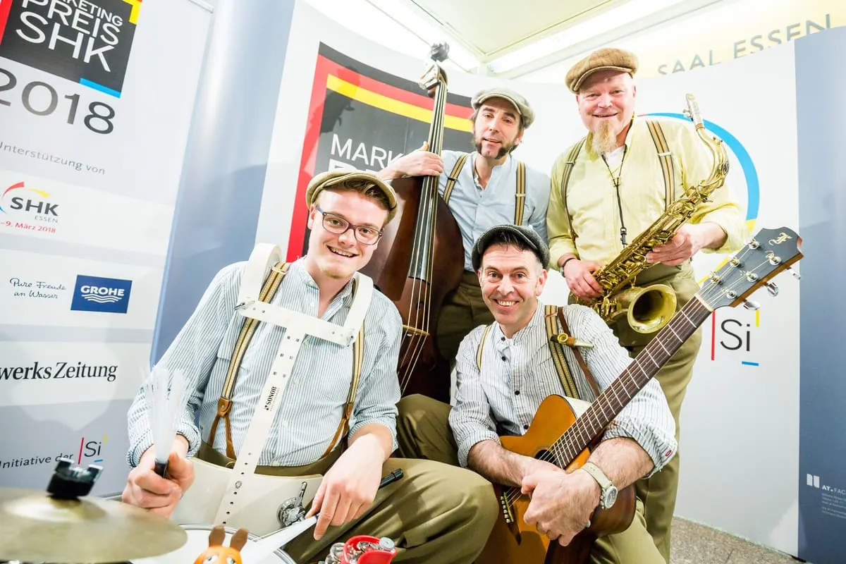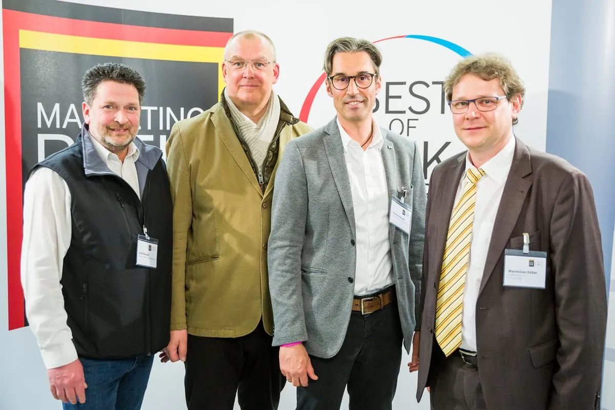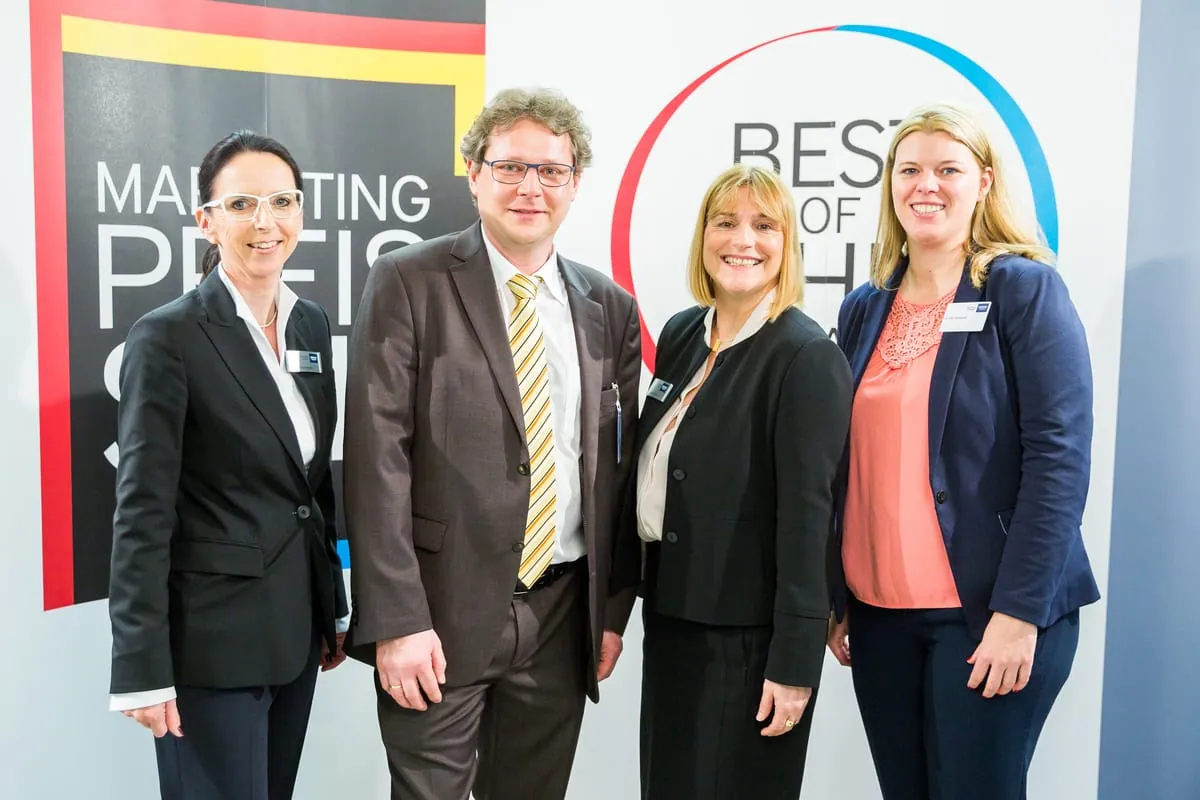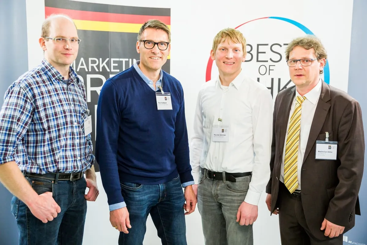 © Alex MuchnikIn diesem Jahr über den Gewinn des Marketingpreis für das deutsche SHK-Handwerk dürfen sich freuen (v. l. n. r.): Hans Schwender, Klaus und Jörg Rahn sowie Aaron Bergmann, der stellvertretend für seinen Vater Ulrich den Preis entgegennahm. -