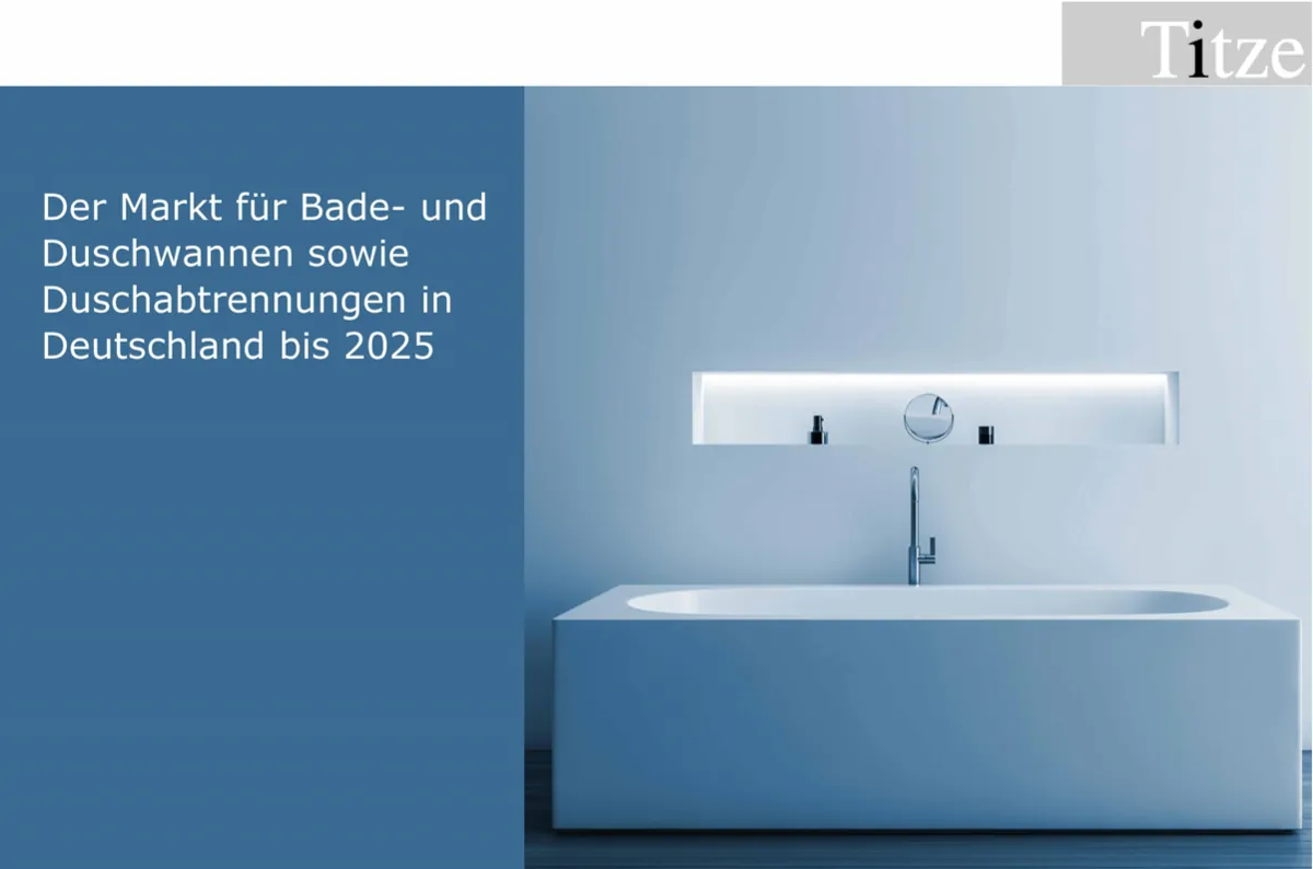 „Der Endkunde verändert sein Bade- und Duschverhalten seit Jahren grundlegend. Die Folge dieser Entwicklung ist eine gravierende Korrektur der Nachfrage und somit eine umfassende Verschiebung des Absatzmarktes.“ Das sind zwei von vielen richtungsweisenden Kernaussagen der aktuellen Marktstudie „Bade- und Duschwannen sowie Duschabtrennungen in Deutschland bis 2025“ aus einer Serie mit fünf neuen Marktstudien speziell zum deutschen Bad- und Sanitärmarkt der Unternehmensberatung Titze GmbH.