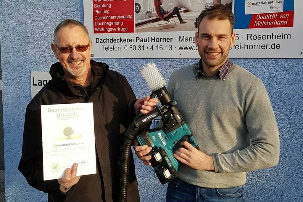 Den 1. Platz sicherte sich mit stolzen 384 Anzeigen unangefochten ein Dachdeckerbetrieb aus Rosenheim. Der Gewinn ist ein Makita-Set im Wert von 1.850 Euro. Der Dachdeckermeister sei begeistert vom Konzept der Gründer, Überschüssiges wieder in den Nutzungskreislauf zu bringen. Hochmotiviert habe er sein Ziel erreicht, „einen ganzen Wald zu pflanzen“, berichtet der Sieger. Zusätzlich hat er auch schon Material im Wert von 900 Euro verkauft und somit doppelt von seiner Mitgliedschaft bei materialrest24.de profitiert.
