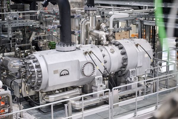 Der ölfreie, hermetisch gekapselte HOFIM-Motor-Kompressor ist das Herzstück der MAN-Großwärmepumpe. – © MAN Energy Solutions