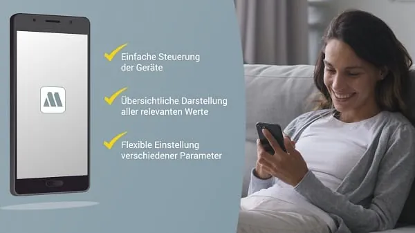 Die App liefert eine Übersicht aller relevanten Werte und bietet flexible Einstellungsmöglichkeiten der wichtigen Parameter wie Feuchte, CO2 und Temperatur. Dadurch kann die Komfortlüftung optimal an das Nutzerverhalten angepasst werden. Ein Online-Support ermöglicht bei Bedarf und Zugangsberechtigung Fernwartungen und Reparaturen. Auch die Bestellung neuer Luftfilter soll mit der App einfach funktionieren.