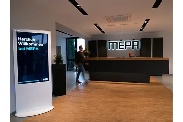 Während die Arbeiten zur Neugestaltung der Außenanlagen im Gästebereich im Frühjahr 2020 anlaufen, wurden alle Bereiche mit Kundenverkehr hinsichtlich ihrer Ausstattung bereits technisch optimiert. Umgebaut und modernisiert wurden insbesondere der Empfang, die Ausstellung sowie das vom Unternehmen in „Mepa Lernwerkstatt“ umgetaufte Schulungscenter inklusive Lounge und Cateringbereich zur Gästebewirtung.