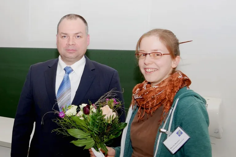 „Wir freuen uns, den Lüftungspreis dieses Jahr Mia-Lisa Meaubert (re.) für ihre herausragende Leistung übergeben zu können“, so Siegmar Duft (li.), Forschungs- und Entwicklungsabteilung airleben. – © airleben GmbH