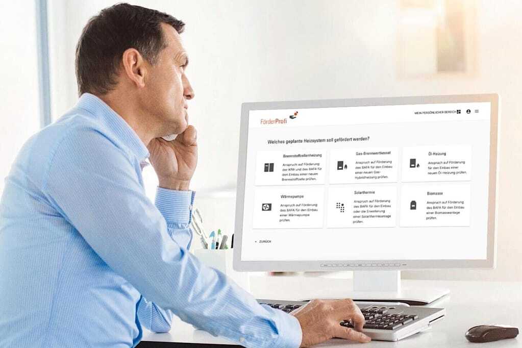 Ob die Anlage grundsätzlich förderfähig ist, wird mithilfe eines Online Quick-Checks – der FörderPrüfung – kostenfrei überprüft. Die notwendigen Angaben zu den technischen Details – wenn erforderlich – kann der Fachhandwerker zur Verfügung stellen. Ob der neue Wärmeerzeuger förderfähig ist, erfährt man direkt im Anschluss an die Eingabe aller Daten. Ist das Ergebnis der FörderPrüfung positiv, übernimmt der FörderProfi gegen eine geringe Gebühr die Bürokratie für den Fachpartner. Dadurch können sich die Fachpartner auf ihr Kerngeschäft konzentrieren.