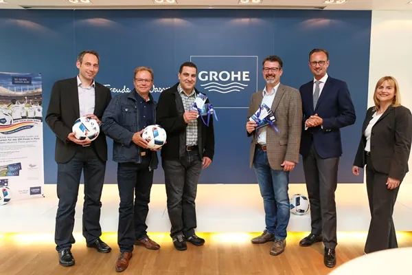 Acht echte Stars hatte Grohe mit den „EM-Torschützen“ in der Startaufstellung des Spiels: Mit den Waschtisch-Armaturen Eurostyle und Eurosmart, den Küchen-Armaturen Eurosmart und Eurosmart Cosmopolitan, dem Brausestangenset und der Handbrause der Linie Tempesta, dem Brausethermostat Grohtherm 1000 sowie dem Unterputz-Universal-Einhandmischer GroheE Rapido E sind alle Positionen in Küche und Bad besetzt. Sie einzusetzen verhalf auch den Gewinnern der Aktion, die aus den Betrieben Thomas Erdmann Heizung-Sanitär, Erwin Laufer Heizungsbau und IHM-Selbitz stammen, zu den ersehnten Tribünenplätzen im Stade de France in Paris.