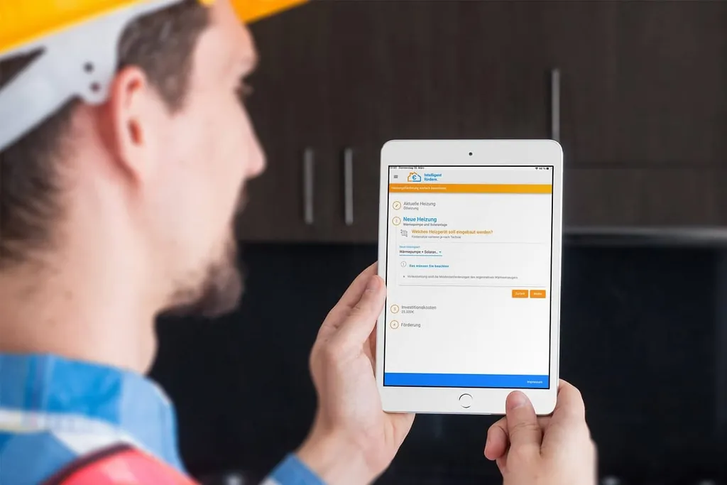 Die „Intelligent fördern“-App wurde 2020 als digitales Hilfsmittel zur Fördermittelsuche für den Heizungstausch entwickelt und kann im App oder Google Play Store kostenfrei heruntergeladen werden. Nach wenigen Klicks wird die Förderhöhe für den Kunden berechnet. Das Ergebnis kann dem Kunden als PDF per E-Mail zugesandt werden.