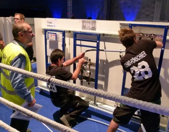 Die Challenge von Geberit erinnert in Art und Aufführung an eine Mischung aus „Wetten, dass…“ und einem Rekordversuch fürs Guinnessbuch der Rekorde. Sie bereitet mindestens ebenso viel Vergnügen. Und wer hat es erfunden? Die Schweizer: Geberit hat eine einfache, wie gleichsam erfolgreiche Rezeptur für den Handwerkerwettbewerb Geberit Challenge aufgesetzt. Zur Auflage im Jahr 2012 begeistert der sportliche Mix aus zwei klassischen Installationsaufgaben und kniffeligen Quizfragen erneut. Spaß ins Spiel kommt zudem beim temporeichen Zusammenbauen des Mepla-Mannes und beim Reifenwechsel an einem Land Rover, wie der Vorentscheid in Mannheim deutlich gemacht hat. Also ein moderner Fünfkampf mit Geberit. Ja, richtig gelesen, Reifenwechsel ist tatsächlich eine Disziplin der Challenge. Eigentlich sogar eine enorm wichtige, steht sie doch für den Preis, den das Siegerteam der Challenge abräumt: eine Luxusreise nach Dubai, inklusive Land-Rover-Tour durch die Wüste. Falls da mal ein Reifen schlapp macht, sollten wenigstens die Handgriffe sitzen. Zur Geberit Challenge in Mannheim jedenfalls passte alles schon ziemlich gut, nicht nur beim Reifenwechseln. Selbst die Trinkwasserinstallation mit dem Stecksystem Push-Fit brachte keine Teilnehmer ins Schleudern, obwohl noch lange nicht jeder Betrieb das System in seinen Arbeitsalltag übernommen hat. Als Sieger aus der Mannheimer Veranstaltung ging übrigens das Team Befa hervor: Arno Marx und Timo Foll von Heizungs-Becker aus Idar Oberstein. Deren Punkteleistung reichte sogar für Dubai. In den restlichen Entscheidungen der Challenge in Berlin und Hamm/Westfalen war niemand besser. Aber Spaß gemacht hat es, nicht nur den Siegern. (dj)