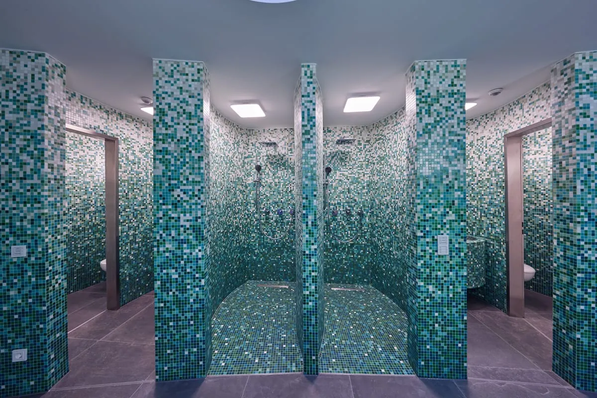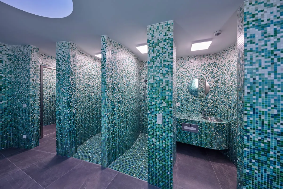 Im hauseigenen Sauna-Bereich sorgen Ixmo Armaturen von Keuco …