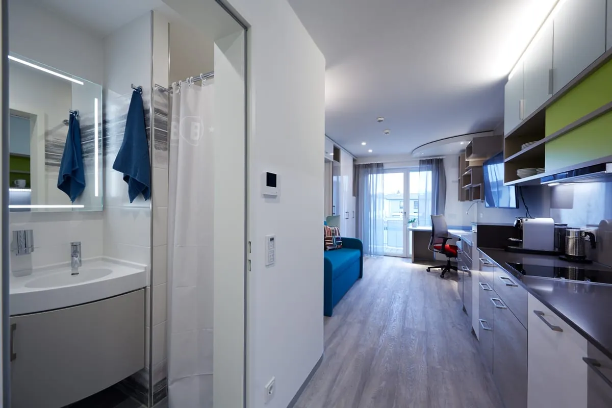Die Innenausstattung bietet Luxus und Komfort auf kleinstem Raum: Gekonnt wurde Schlaf- und Arbeitszimmer, Küche und Bad in den Apartments arrangiert. Eine multifunktionale und maßgeschneiderte Einrichtung, die keine Wünsche offen lässt.