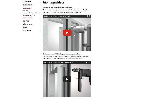 Mit Hilfe einer Computersimulation wird dabei die Vorgehensweise zur Integration in Vorwand-Installationssysteme, in Metall-Ständerwerke sowie auch direkt in das Mauerwerk und damit die gesamte Bandbreite der Montagemöglichkeiten in jeweils einem Video präsentiert. Die Darstellungen beinhalten unter anderem das Zusammensetzen und Befestigen der vorgefertigten Einbaurahmen, die Benennung der für die Montage erforderlichen Aussparungs- und Abstandsgrößen sowie die abschließende Positionierung und Fixierung der Moduleinheiten und Lichtspiegelschränke in der Wand.