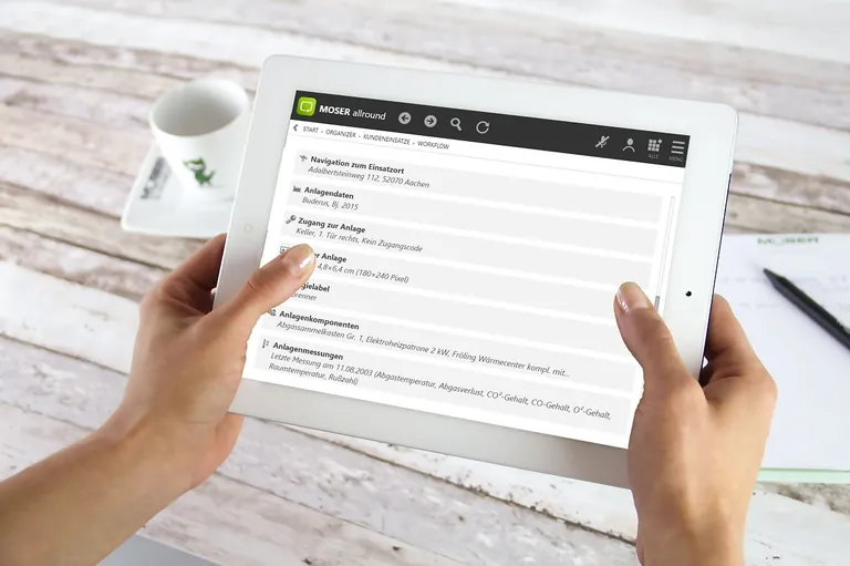 „Vom Einsatz digitaler Werkzeuge erwarten sich SHK-Profis reibungslose und fehlerfreie Prozesse“, weiß Maximilian A. Moser. „Und zwar unabhängig von der Arbeitsumgebung und Situation.“ Deshalb ermöglicht die neue Moser Software-Generation den mobilen Zugriff, wofür lediglich ein mobiles Endgerät und eine Internetverbindung benötigt werden. Bei der aktuellen Weiterentwicklung der Software lag ein Schwerpunkt auf der einfachen und intuitiven Handhabung im mobilen Arbeitsalltag. Dabei ist die responsive Benutzeroberfläche darauf ausgelegt, auf jeglichem Gerät (Smartphone, Tablet, Notebook, etc.) bequem bedienbar zu sein. Eine permanente Aktualisierung sorgt dafür, dass die Daten immer allen Anwendern auf dem aktuellen Stand zur Verfügung stehen. Das gilt sowohl für den Monteur, welcher mit seinem Tablet beim Kunden vor Ort arbeitet, als auch für die Mitarbeiter im Büro. Diese können sämtliche Informationen der Außendienstmitarbeiter postwendend weiterverarbeiten.