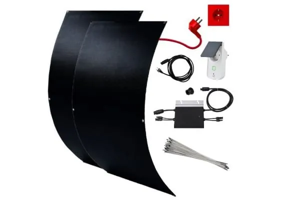 Alpha-Solar verkauft seine Alpha Flex Balkonkraftwerk mit den flexiblen Modulen S-Flex Full Black. Das Komplettset ist in zwei Ausführungen erhältlich – Balkonkraftwerk Alpha Flex Komplettset 375 Wp und Balkonkraftwerk Alpha Flex Komplettset 750 Wp. Neben einem bzw. zwei flexiblen Modulen und einem Microwechselrichter sind im Lieferumfang eine wasserdichte Endkappe für den Microwechselrichter, ein Anschlusskabel (5 m) und Schukostecker, ein WLAN-Messgerät sowie 24+(4) Edelstahl Kabelbinder enthalten