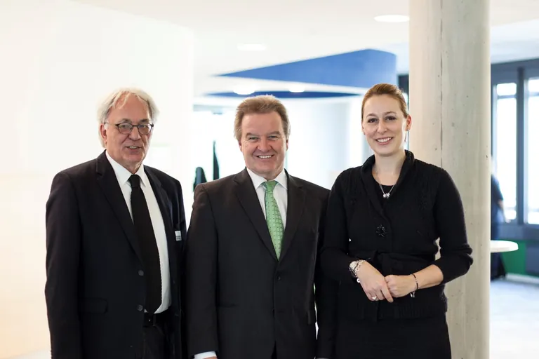 Eröffneten die neue DGNB-Geschäftsstelle: Prof. Alexander Rudolphi (DGNB-Präsident), Franz Untersteller (Minister für Umwelt, Klima und Energiewirtschaft in Baden-Württemberg), Dr. Christine Lemaitre (Geschäftsführender Vorstand DGNB) (von links). – © DGNB