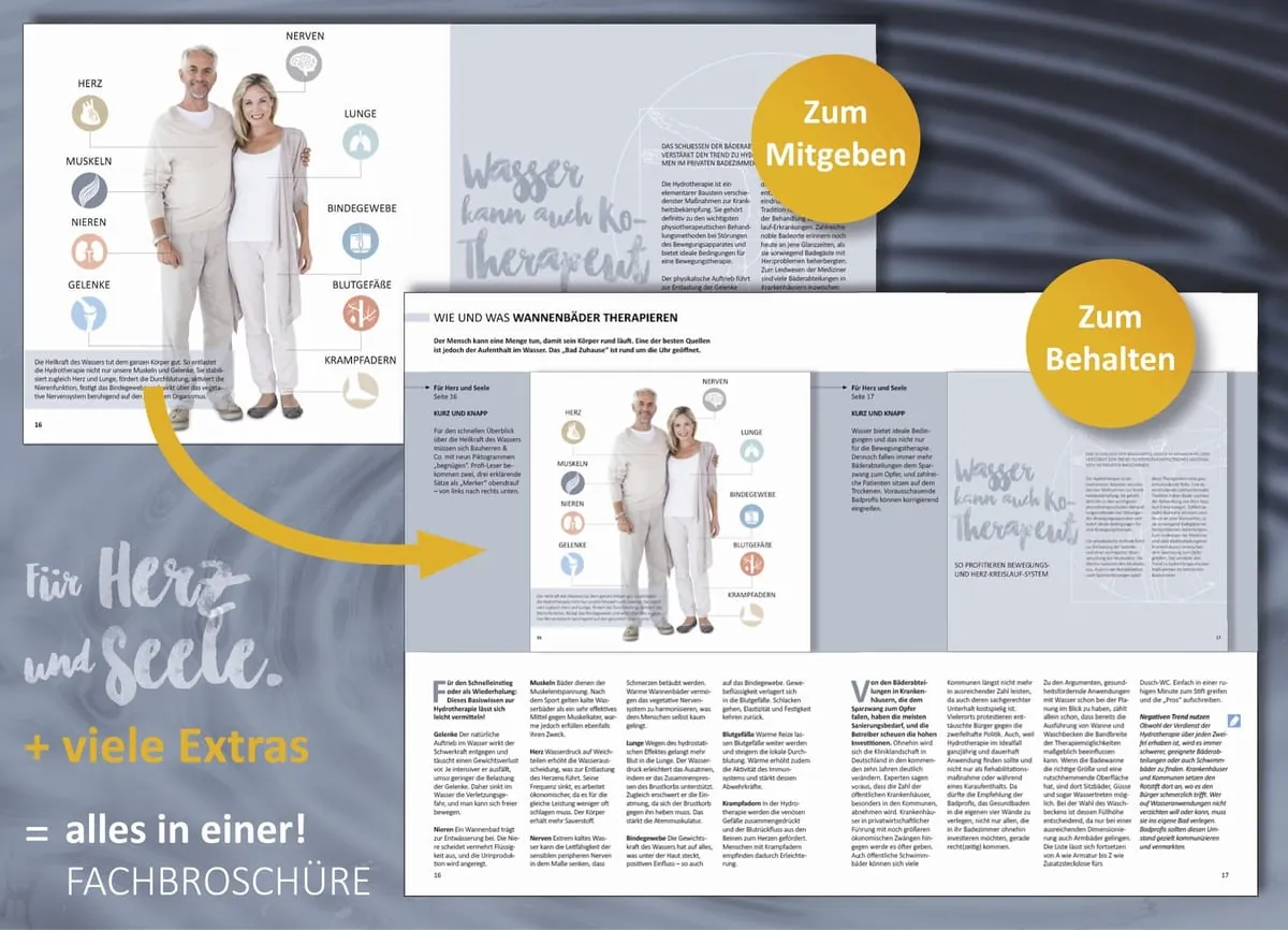Zu dem „kompakten und leicht nutzbaren Portfolio“ gehörten Logo, Anzeigen, Poster, Internet-Banner sowie eine Muster-Presseinformation. Die druckfähigen Vorlagen stünden in den internen Bereichen der Websites www.zvshk.de und www.dg-haustechnik.dezum Download zur Verfügung. Passend zum Thema „Bad und Gesundheit“ ließen sich außerdem die Endverbraucherbroschüre „Für Herz und Seele“ und die Fachpublikation „alles in einer!“ gezielt einsetzen. Das gebührenpflichtige Duo erhöhe die Beratungskompetenz und kann per E-Mail abgerufen werden.