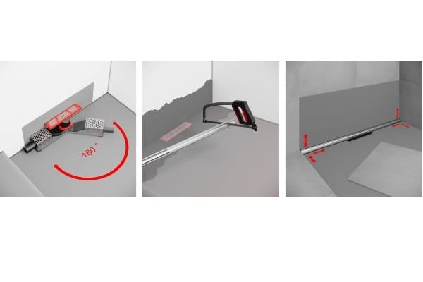 Das Edelstahlprofil ist in den Längen 110cm und 160cm erhältlich und nischenbündig kürzbar. Der Ablauf lässt sich beliebig ausrichten, unabhängig vom Anschlusspunkt der Abwasserleitung, sodass der Anschluss an die Abwasserleitung problemlos und ohne komplexe Formteile erfolgen kann.