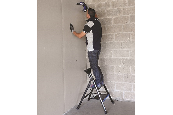 Mit einer Grundfläche von 0,70 x 0,70 Metern ist außerdem ein stabiler und sicherer Stand der Funktionsleiter gewährleistet. Für einen bequemen Tritt sorgen die beiden 244 x 366 Millimeter breiten Stufen, die beim Ausklappen automatisch einrasten. Das Zusammenklappen ist durch einfaches Hochziehen der Leiter möglich. Für zusätzliche Sicherheit sorgen breite Anti-Rutsch-Pads – vier zum Stehen als Stufenstehleiter und vier auf beiden Seiten zum seitlichen Aufstellen. Die Maximalbelastung liegt bei 150 Kilogramm.