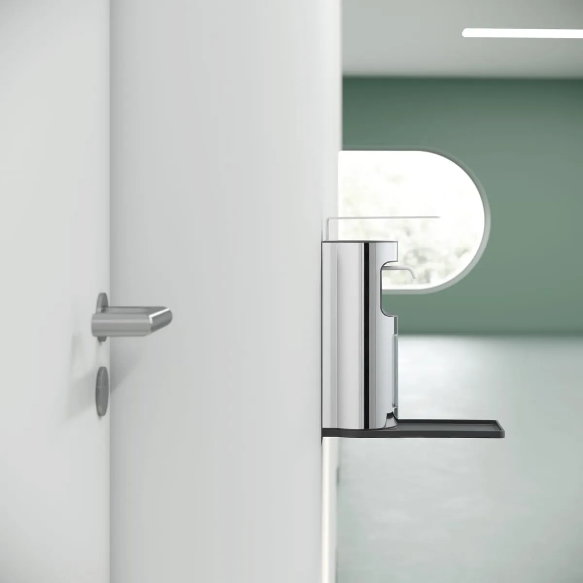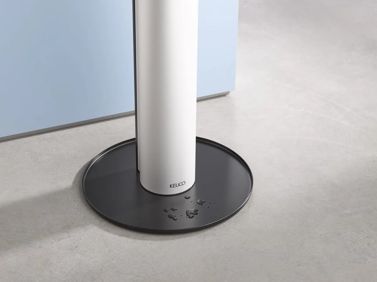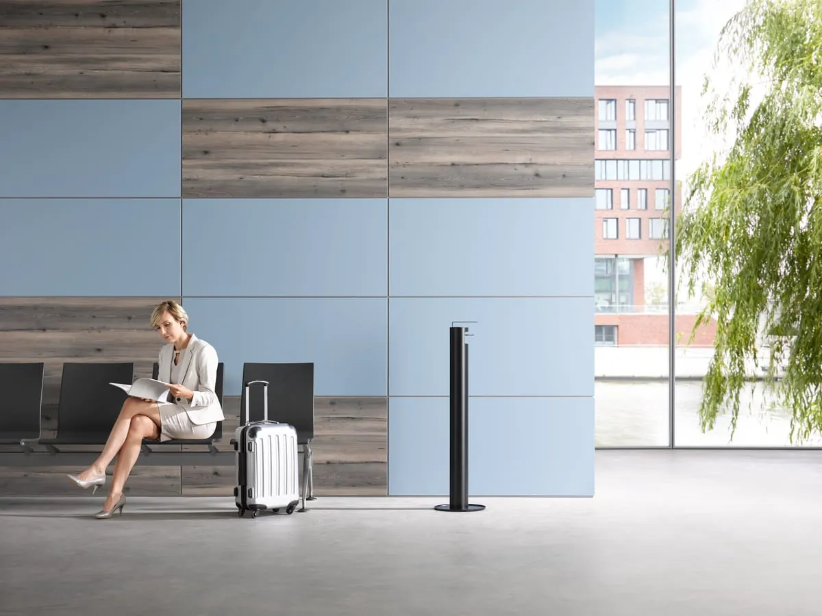 Der Desinfektionsmittelspender Plan überzeugt mit seiner Kombination von Design und Funktion im Eingangsbereich, am Fahrstuhl oder auf dem Flur. Er fügt sich in jede Umgebung und wird zum wichtigen Hygieneaccessoire überall dort, wo Menschen sich begegnen.