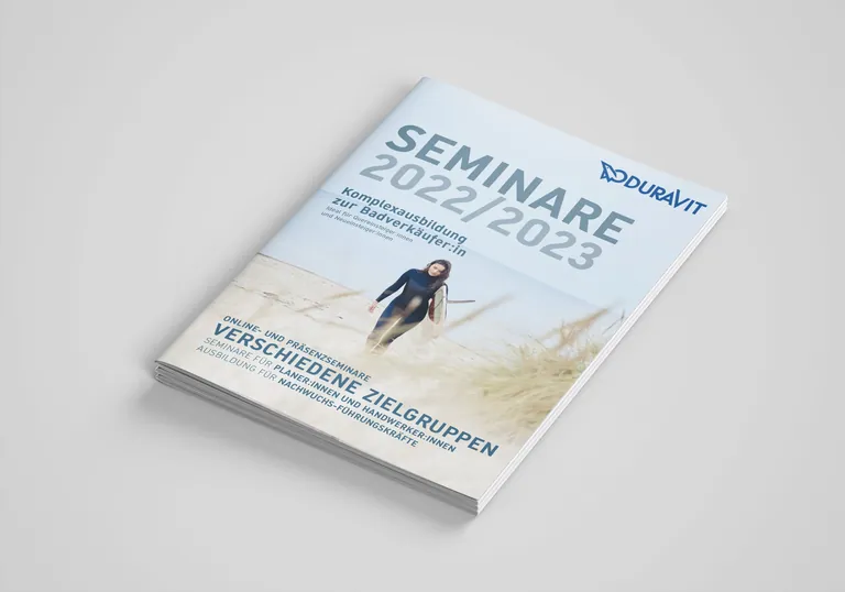 Mit der neuen Seminarbroschüre bietet Duravit Partnerinnen und Partnern aus Handel und Handwerk ein vielfältiges und praxisnahes Weiterbildungsprogramm an, das optimal auf aktuelle Bedürfnisse zugeschnitten ist. Der Fokus liegt auf den vier Schwerpunktthemen Zeit, Fachkräftemangel, Wettbewerb der Vertriebswege und Komplexität.