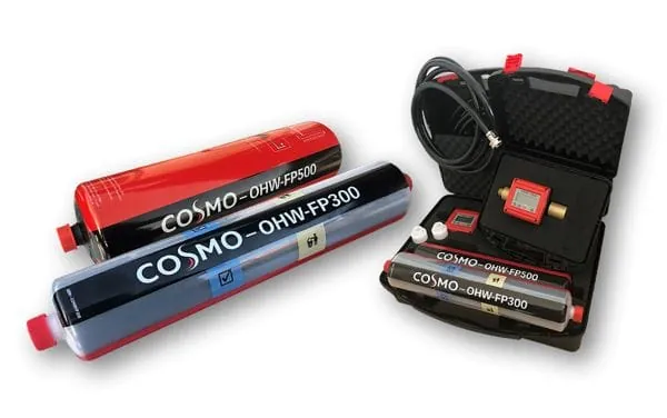 Die Einwegpatrone Cosmo OHW FP500 verfügt über eine Kapazität von rund 5.000 l bei 1° dH. Aufgeschraubt auf die Einwegpatronen, macht der Messcomputer diese zu einem einfachen, sowie handlichen Füllapparat. Er überwacht litergenau Füllmenge und Kapazität. Damit ist ein präzises Ausschöpfen der Gesamtkapazität unter Einhaltung der Richtlinien gewährleistet. Der Computer misst die elektrische Leitfähigkeit in μs/cm und die Gesamtmenge aufgelöster Feststoffe (TDS), den Volumenstrom in l/min sowie die Gesamtfüllmenge in Liter. Diese kann immer wieder auf Null gesetzt werden.