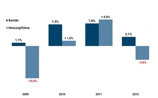 Umsatzveränderung der beiden Segmente Sanitär und Heizung Klima 2009?2012 – © Quelle: IFH Köln