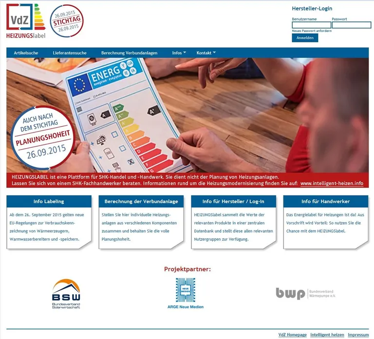 Auf der neutralen Plattform Heizungslabel des VdZ unter www.heizungslabel.de lässt sich das Verbundlabel kostenlos erstellen. Die Plattform bietet zudem eine Übersicht über die Produktdaten der derzeit 90 teilnehmenden Hersteller.