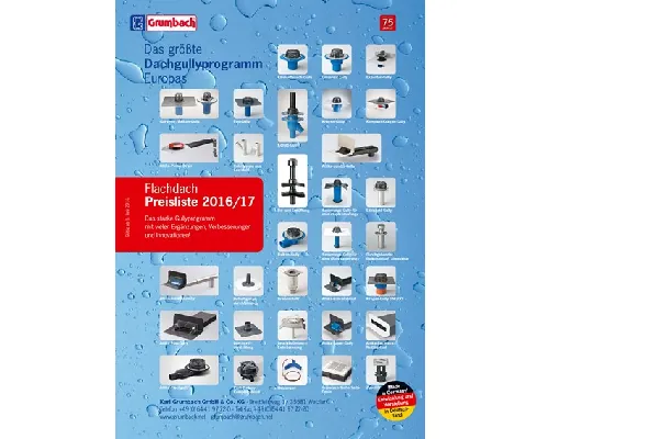 Mit der neuen „Flachdach-Preisliste 2016/17“ fasst die Karl Grumbach GmbH ihr komplettes Dachgully-Programm zusammen.