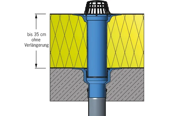 Das Aufstockelement des Kompakt-Kragen-Gullys ist kompatibel mit dem vielseitigen Universal-Gully. Bei Warmdächern wird der Universal-Gully häufig als Basiselement eingebaut. Die Verbindung zwischen Gully und Dampfsperrabdichtung erfolgt dabei durch Klemmen. Darauf wird zur Überbrückung der Wärmedämmung eines der drei Aufstockelemente aus der Serie Kompakt-Kragen-Gully mit der gewünschten Anschlussbahn eingesetzt. Diese Konstellation erfordert keine Rückstaudichtung für das Aufstockelement, denn der Universal-Gully verfügt über eine Kombi-Dichtung, die sowohl für die Flanschpressung als auch für die Rückstaudichtung zuständig ist.
