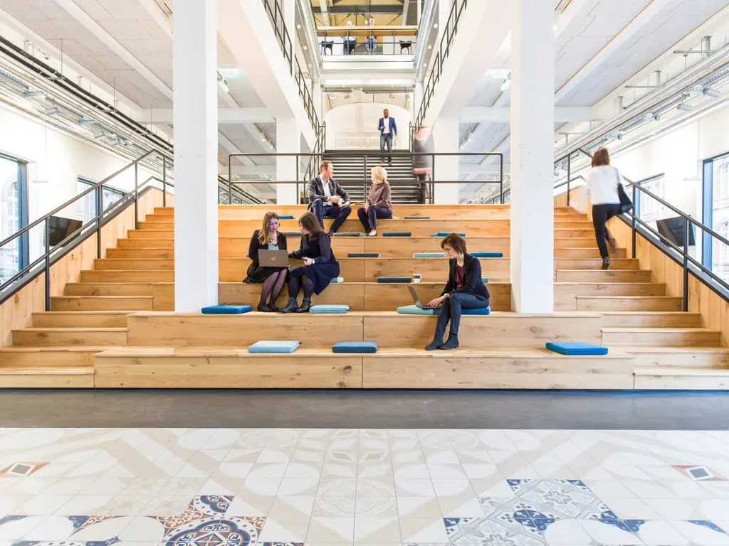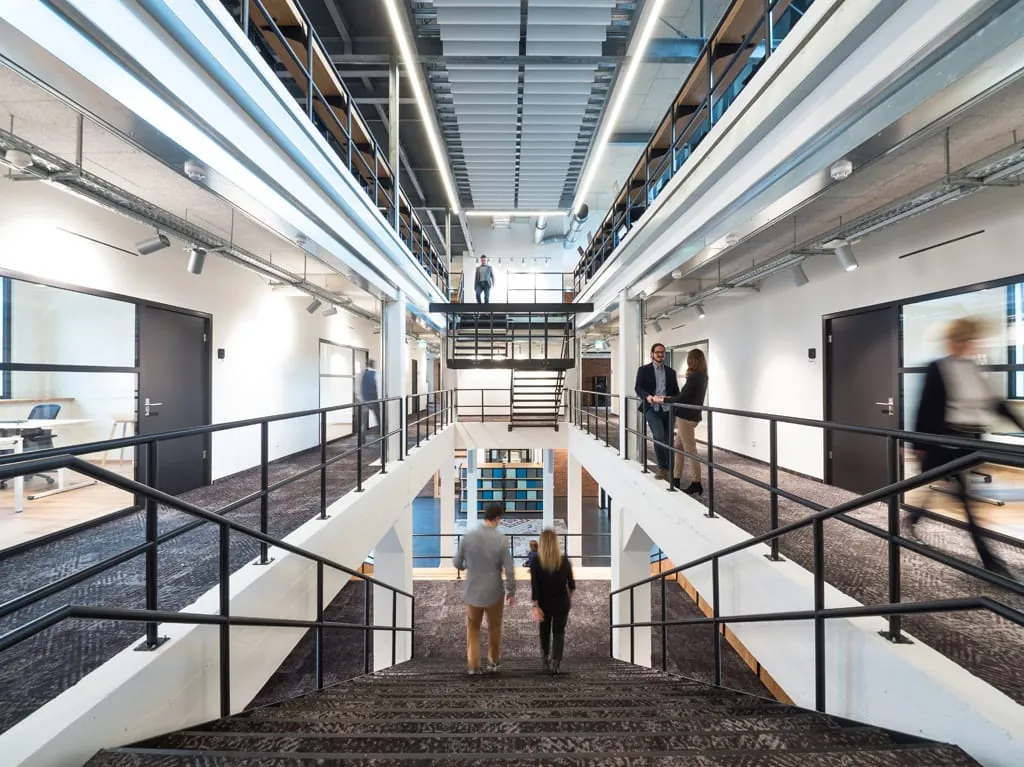 Das Gebäude umfasst mehr als 4.000 m² auf drei Etagen. Im Mittelpunkt steht eine große Treppe aus Eichenholz, die das Erdgeschoss mit den oberen Etagen verbindet und den Blick zwischen den Geschossen freilässt. Die durch den Luftraum erzeugte Offenheit des Gebäudes steht auch symbolisch für das Arbeiten in Fabrik N°09, das von offener Kommunikation und kreativem Austausch geprägt sein soll. In drei Zonen – „Marktplatz“, „Arbeiten“ und „Netzwerken“ – stehen den mehr als 200 Mitarbeitern aus den Abteilungen rund um Marketing, Online-Unit, PR sowie Produktentwicklung und -management Arbeitsflächen zur Verfügung. In Fabrik N°09 gibt es für jede Aufgabe die passende Raum- und Arbeitssituation. Das bedeutet beispielsweise, in den Gruppenarbeitsbereichen und Projekträumen wird im Team gearbeitet, sogenannte Silence-Räume eignen sich für die konzentrierte Arbeit und auf den Netzwerk-Flächen kann zwischen zwei Terminen temporär gearbeitet oder sich ausgetauscht werden.
