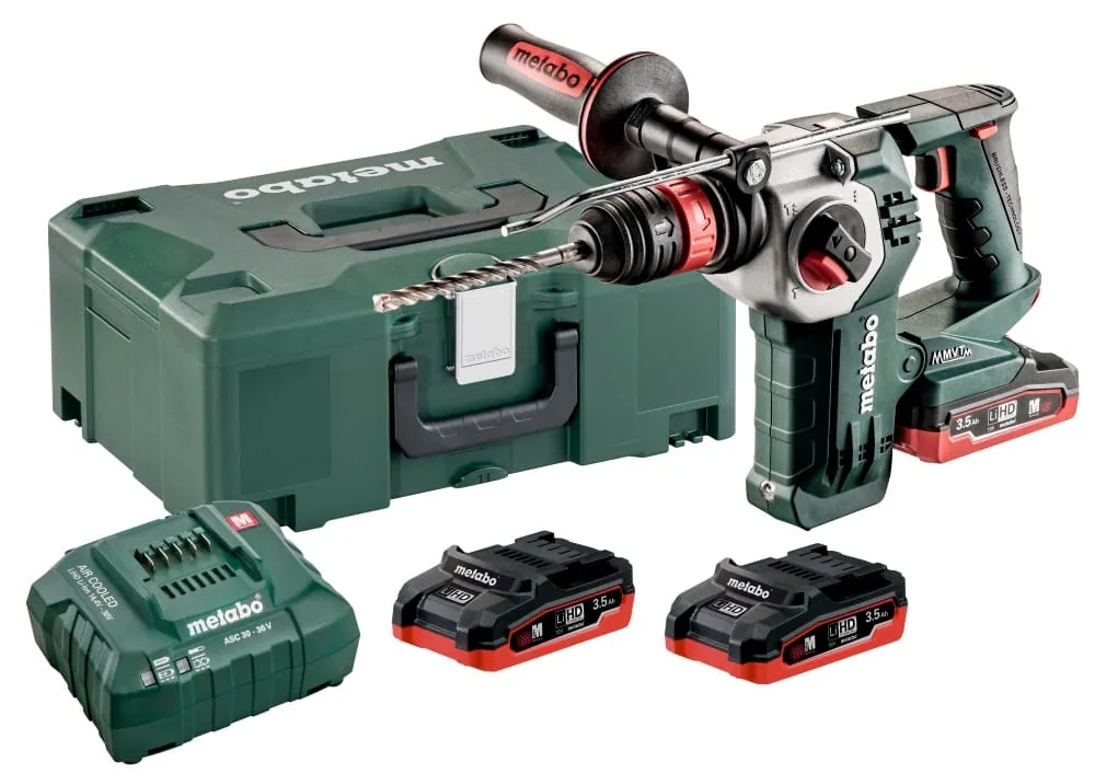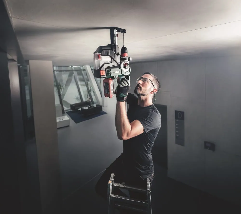 Mit einem 3.5-Amperestunden-LiHD-Akku wiegt der Kombihammer nur 3,4 Kilogramm. Ob Dübellöcher bohren, Fliesen entfernen oder Dosen senken: Mit der ergonomischen Bauweise in L-Form und seinem optimalen Schwerpunkt liegt das Gerät perfekt in der Hand – ideal für komfortables Arbeiten mit geringem Kraftaufwand. Mit dem praktischen Schnellwechselsystem Metabo Quick können Handwerker das SDS-plus-Bohrfutter bequem gegen ein Schnellspannbohrfutter für Holz- und Metallbohrer austauschen. Zum Schutz der Anwender hat Metabo den neuen Bohrhammer mit der Metabo S-automatic ausgestattet: Die Sicherheitskupplung reduziert die Unfallgefahr auf ein absolutes Minimum, indem sie den Antrieb unmittelbar stoppt, sobald der Bohrer blockiert. Darüber hinaus schützen ein integriertes Dämpfungssystem und der vibrationsreduzierende Zusatzhandgriff die Gesundheit der Anwender bei lang andauernden Meißelarbeiten oder beim Bohren in Beton.