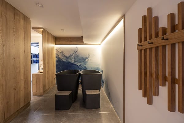 Der neue Regenerationsbereich kombiniert moderne Technik mit einem ästhetischen Design und vereint körperliche und mentale Stärkung mit Erholung und handwerklichen Know-How. Die belebende Wirkung des Profi-Whirlpools fügt sich nahtlos in die Gestaltung ein und unterstützt die Muskelentspannung nach intensiven Trainingseinheiten der Fußballprofis. Die stilvolle Designsauna mit einer angrenzenden Infrarotkabine beeindruckt durch hochwertige Materialien und sorgt für eine effektive Förderung der Durchblutung. Die modernen Kältebecken bieten eine willkommene Abkühlung und tragen zur vitalisierenden Atmosphäre bei. Ergänzt wird der Bereich durch eine komfortable Wellnessdusche, die mit moderner Ausstattung und einem erfrischenden Erlebnis überzeugt. Den perfekten Abschluss bildet ein Entspannungsbereich mit verglastem Effektfeuerspiel, das nicht nur Wärme, sondern auch ein außergewöhnliches Flair schafft. Das Ambientefeuer ist emissionsfrei und arbeitet nach einem neuartigen Verdunstungsprinzip ohne Kamin und Ruß.