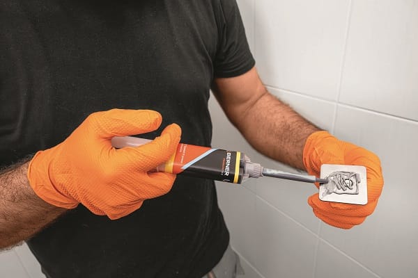 Bauprofis können den 2C Power & Speed sowohl für horizontale als auch vertikale Arbeiten einsetzen. Der Power-Kleber ist geruchsneutral und als „User Protect“ – eine der drei Berner-Kategorien für nachhaltige Produkte – gelabelt. „Wenn man beim Auftragen etwas Feuchtigkeit hinzugibt, lässt sich der Aushärtungsprozess sogar noch beschleunigen“, gibt Experte Halama einen Extra-Tipp. „Und das Beste ist, das man ihn mithilfe des Berner-Aufkleberentferners von glatten Oberflächen auch nahezu vollständig und rückstandsfrei beseitigen kann, wenn man vielleicht eine neue Positionierung wünscht. Das vermeidet unschöne Löcher in Fliesen und Wänden.“