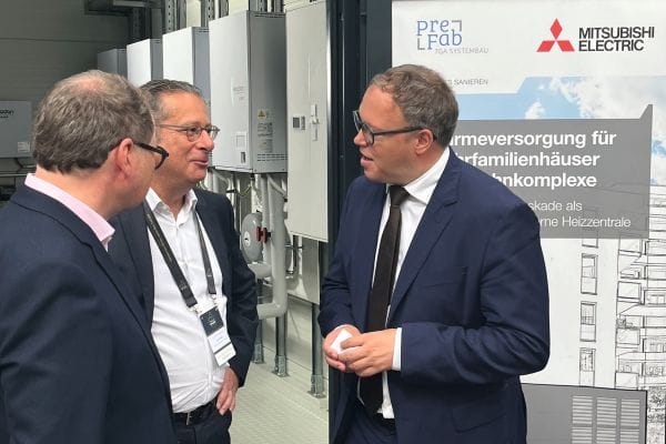 Ein Beispiel stellt die externe Heizzentrale dar, die Mitsubishi Electric gemeinsam mit der PreFab TGA GmbH realisiert hat: in Containern eingebaute Wärmepumpen-Kaskaden, die außerhalb des Gebäudes aufgestellt werden. „Dies ist eine besonders platzsparende Möglichkeit beim Wechsel von dezentralen Lösungen wie der Gasetagenheizung zu einem zentralisierten System“, so Peled. Er wies auf die besondere Wirtschaftlichkeit hin, die sich dank des Plug-and-play-Prinzips erreichen lässt.