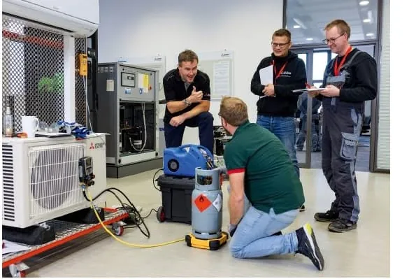 Basis der neuen Wissenstrainings sollen praxisnahe Technikschulungen rund um die Planung, Auslegung und Dimensionierung sowie Installation, Inbetriebnahme, Service und Wartung von Ecodan-Luft/Wasser-Wärmepumpen sein. In einem separaten Trainingsmodul steht darüber hinaus die Auslegung, Installation, Inbetriebnahme und Wartung von Luft/Luft-Wärmepumpen im Fokus. Hier werden alle Besonderheiten behandelt, die beim Umgang und dem Einsatz mit dieser Wärmepumpen-Technologie beachtet werden müssen. In ebenfalls separaten Trainingseinheiten werden das Sole/Wasser-Wärmepumpensystem Geodan und Wärmepumpen mit dem natürlichen Kältemittel CO2 / R744 betrachtet.