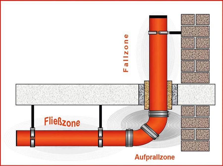 Körperschallbrücken müssen, unabhängig vom Werkstoff der Abwasserleitung, grundsätzlich vermieden werden. Schon durch eine einzige Körperschallbrücke, gleichgültig ob bei einem Abwasserrohr aus Metall oder Kunststoff, kann der geforderte Schallschutz erfahrungsgemäß nicht mehr erfüllt werden. Falls die Gefahr von Körperschallbrücken durch nachfolgende Gewerke besteht, muss eine Körperschalldämmung erfolgen. Für die Befestigung der Abwasserrohre müssen grundsätzlich körperschallgedämmte Befestigungselemente verwendet werden. Die Verlege- und Montageanleitungen der Hersteller sollten unbedingt beachtet werden.